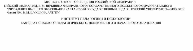 БИЙСКИЙ ФИЛИАЛ ИМ. В. М. ШУКШИНА ФЕДЕРАЛЬНОГО ГОСУДАРСТВЕННОГО БЮДЖЕТНОГО ОБРАЗОВАТЕЛЬНОГО УЧРЕЖДЕНИЯ ВЫСШЕГО ОБРАЗОВАНИЯ «АЛТАЙСКИЙ ГОСУДАРСТВЕННЫЙ ПЕДАГОГИЧЕСКИЙ УНИВЕРСИТЕТ» (БИЙСКИЙ Филим ИМ. В. М. ШУКШИНА АЛТГПУ)