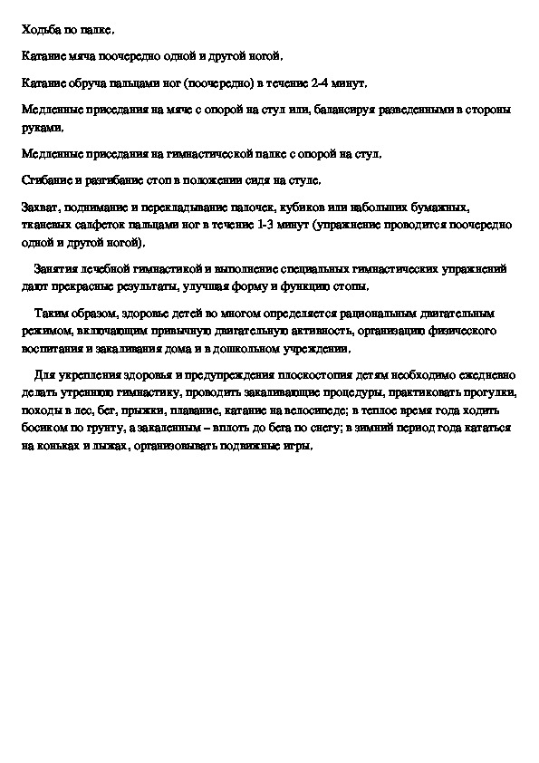плоскостопия в раннем возрасте имеет особое значение. Эта работа обязательно должна