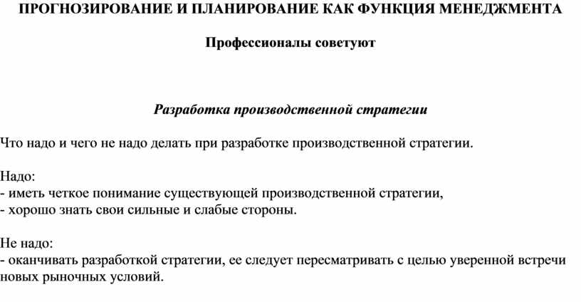 Что надо и чего не надо делать при разработке производственной стратегии.