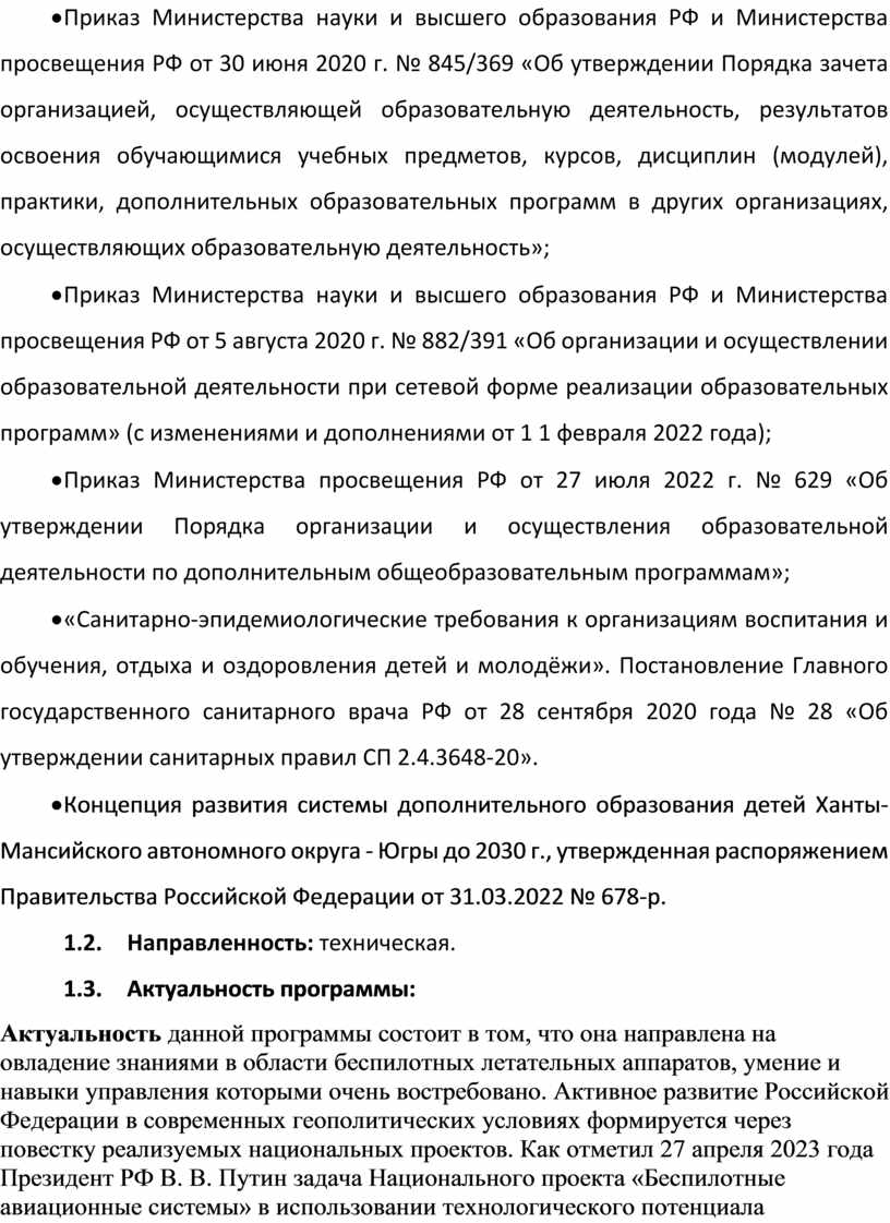 ·Концепция развития системы дополнительного образования детей Ханты-Мансийского автономного округа - Югры до 2030 г., утвержденная распоряжением Правительства Российской Федерации от 31.03.2022 № 678-р.