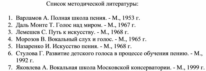 4. Морозов В. Вокальный слух и голос. - М., 1965 г.