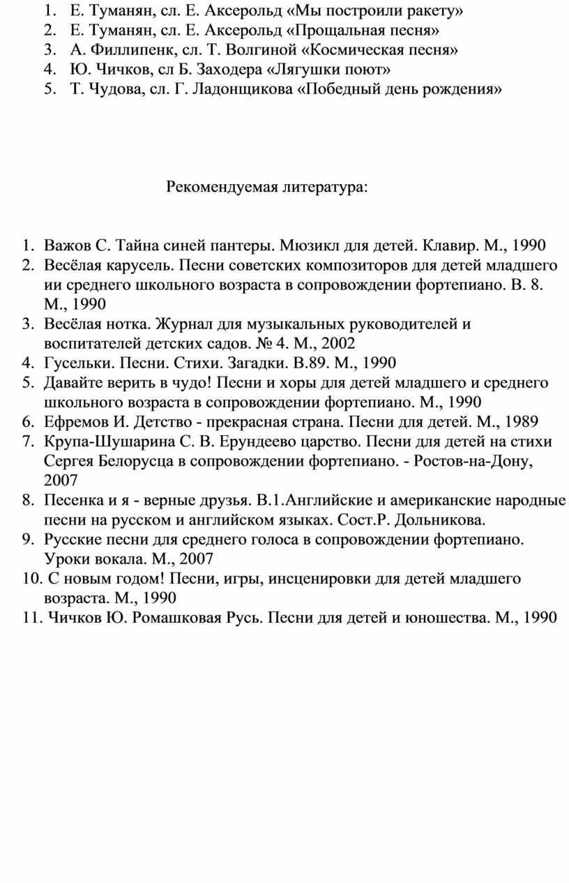 6. Стулова Г. Развитие детского голоса в процессе обучения пению. - М., 1992 г.