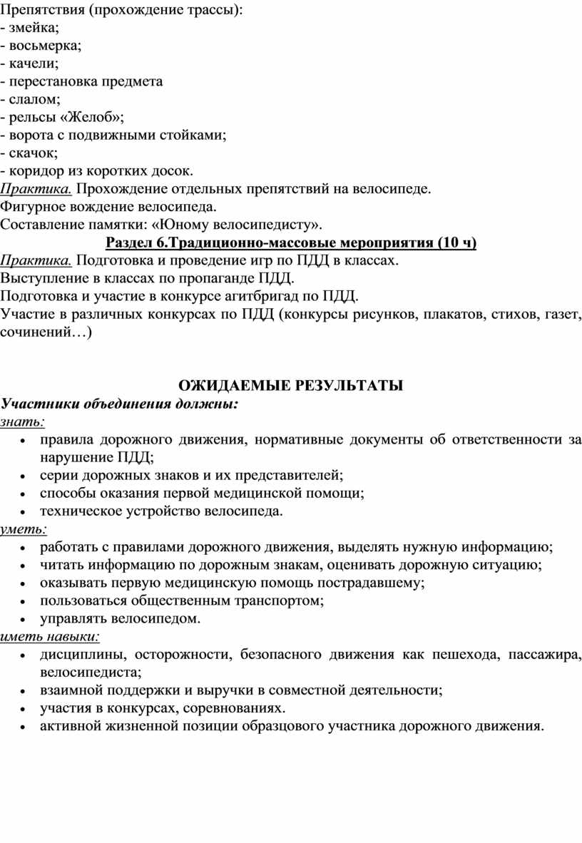 Раздел 5: Фигурное вождение велосипеда (10 ч) |