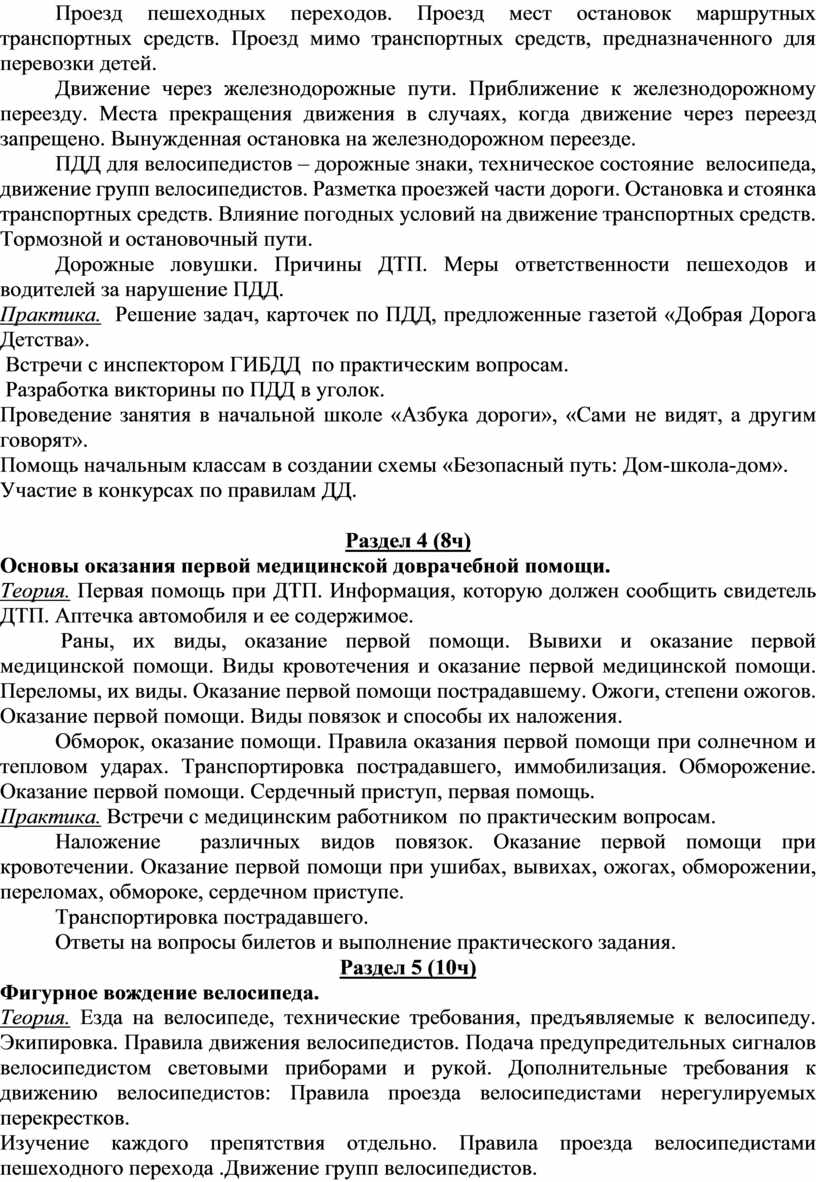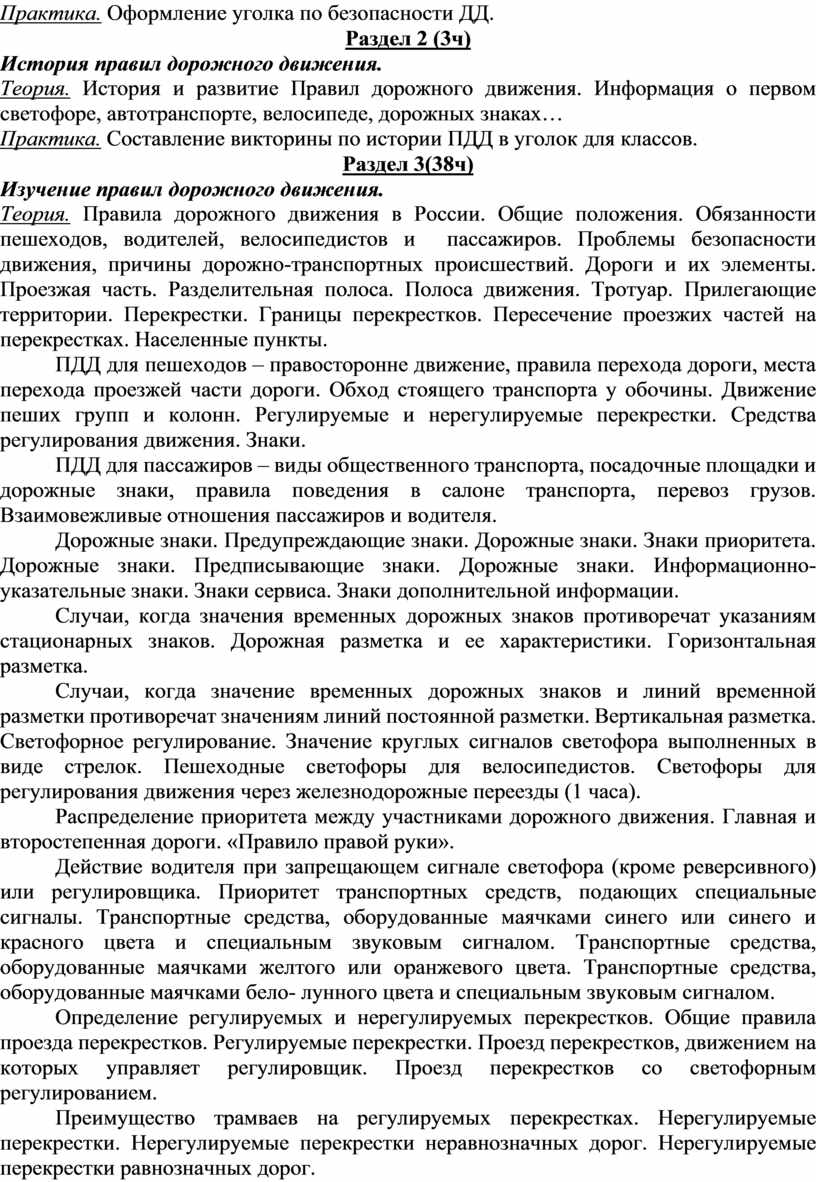 Особенность программы заключается в создании условий для формирования безопасного образовательного пространства при взаимодействии с сотрудниками ГИБДД. Возрастной состав обучающихся 7-12 лет. Реализация программы рассчитана на один год. Создаётся актив детей для оказания помощи изучения ПДД через агитацию, пропаганду, конкурсы, игры, соревнования. Занятия проводятся 2 раза в неделю по 1 часу (74 часов в год).