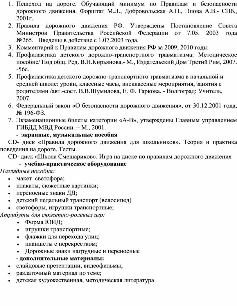 10. Пешеход на дороге. Обучающий минимум по Правилам и безопасности дорожного движения. Форштат М.Л., Добровольская А.П., Эпова А.В.- СПб., 2001г.