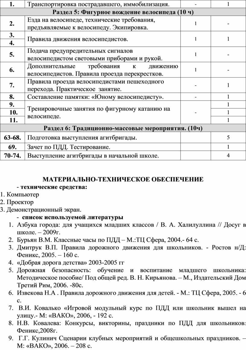 14. Профилактика детского дорожно-транспортного травматизма в начальной и средней школе: уроки, классные часы, внеклассные мероприятия, занятия с родителями /авт.-сост. В.В.Шумилова, Е. Ф. Таркова. - Волгоград: Учитель, 2007.