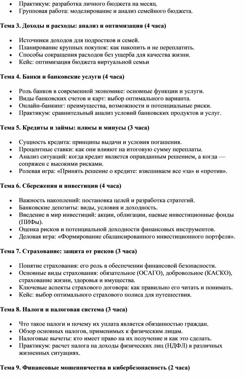 основы инвестирования, налогообложения и финансового планирования.