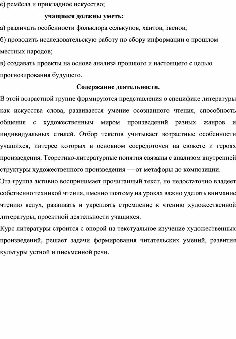Курс литературы строится с опорой на текстуальное изучение художественных произведений, решает задачи формирования читательских умений, развития культуры устной и письменной речи.