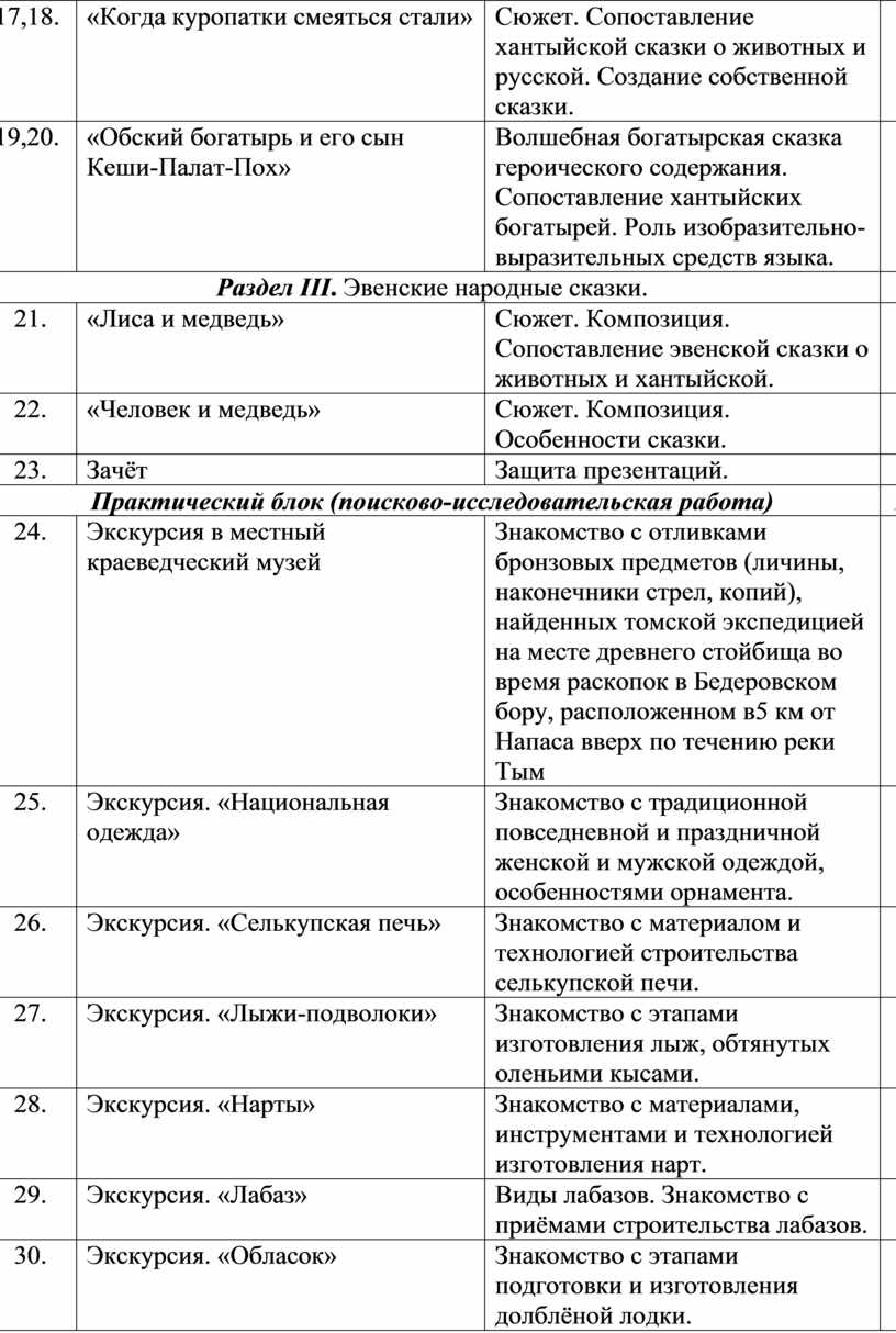 Цель курса: изучение фольклорных традиций коренных народов Севера, проживающих в селе Напас.