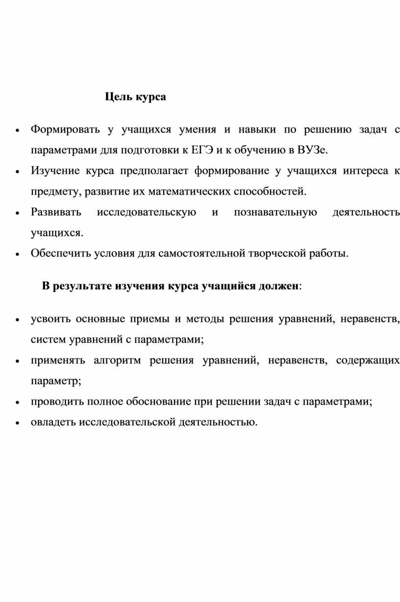 · Формировать у учащихся умения и навыки по решению задач с параметрами для подготовки к ЕГЭ и к обучению в ВУЗе.