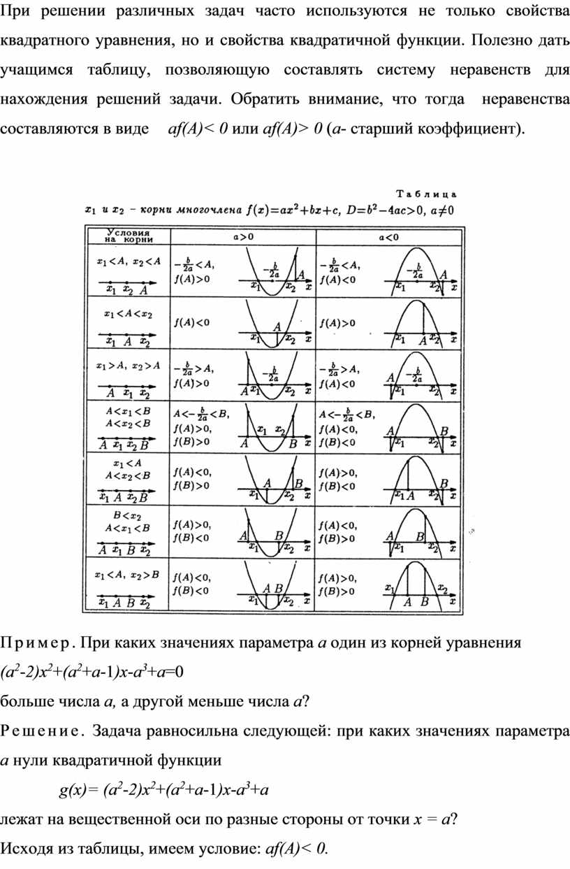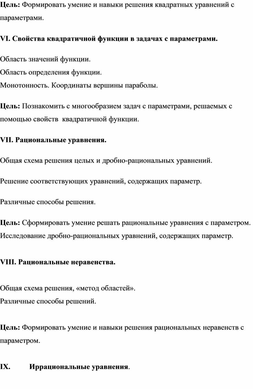 VI. Свойства квадратичной функции в задачах с параметрами.