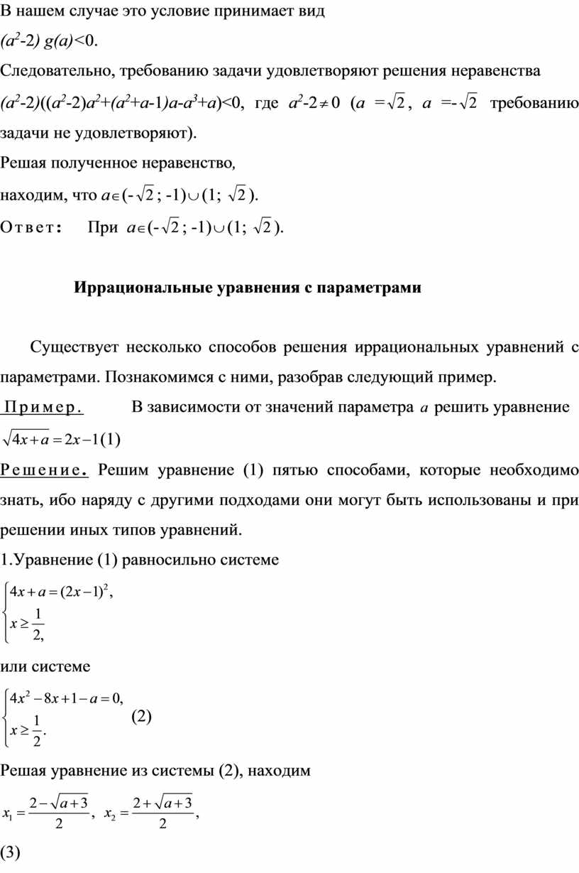 Исследование иррациональных уравнений, содержащих параметр.
