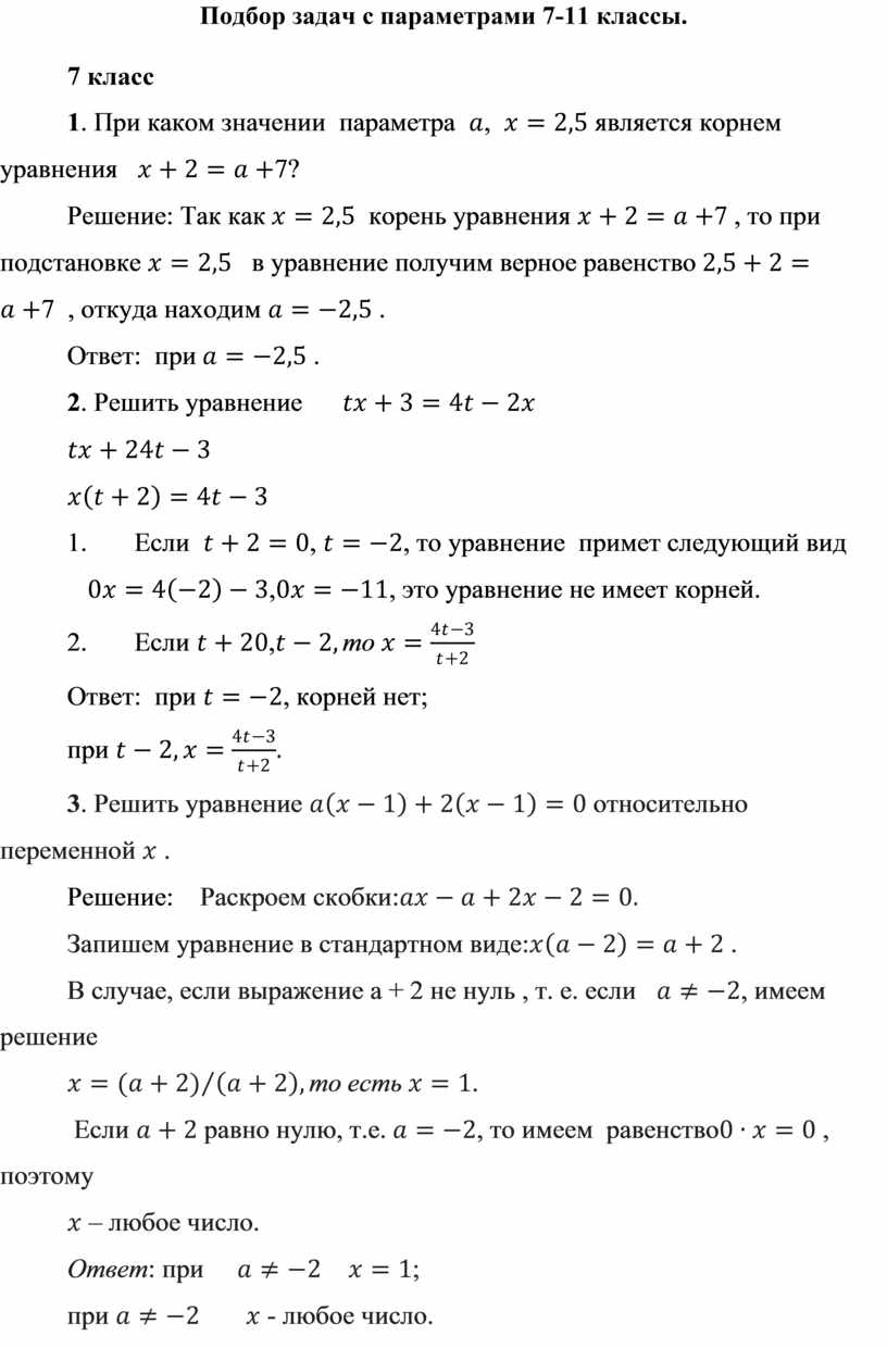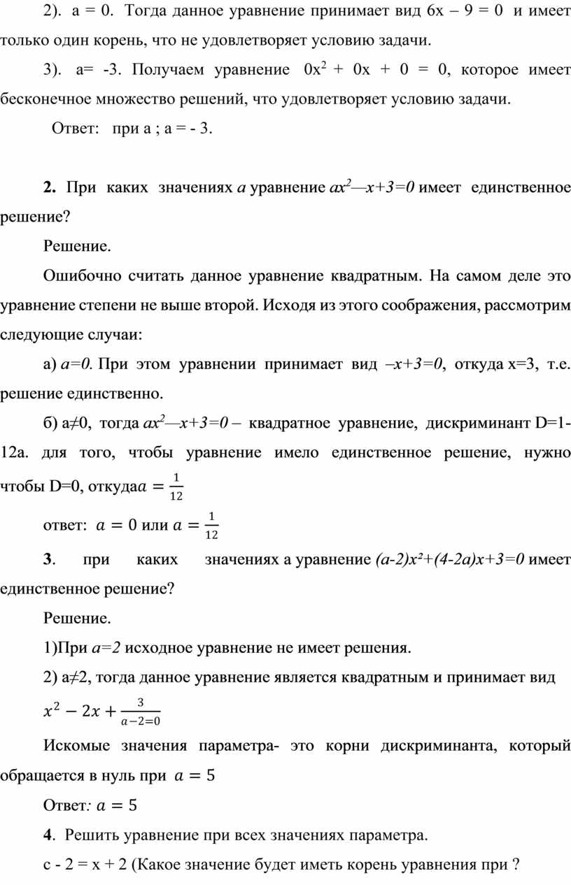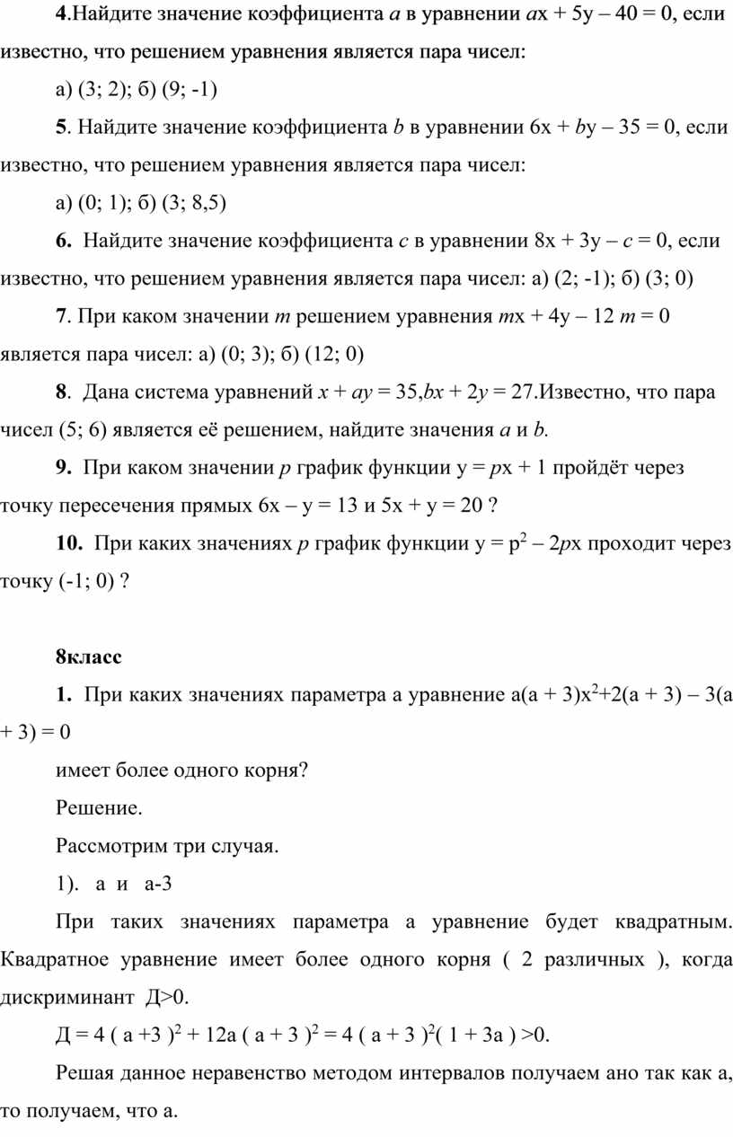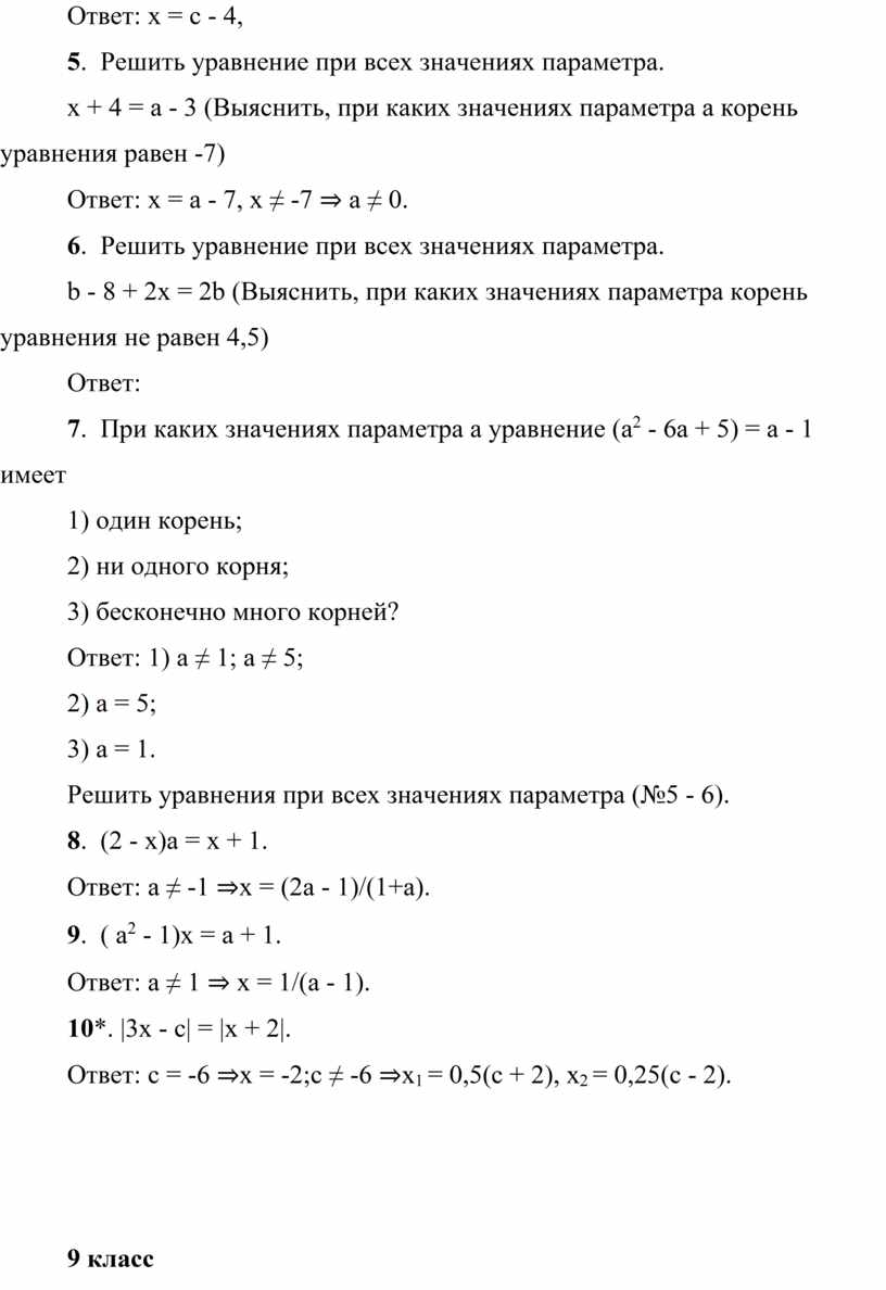 уравнений с параметрами.