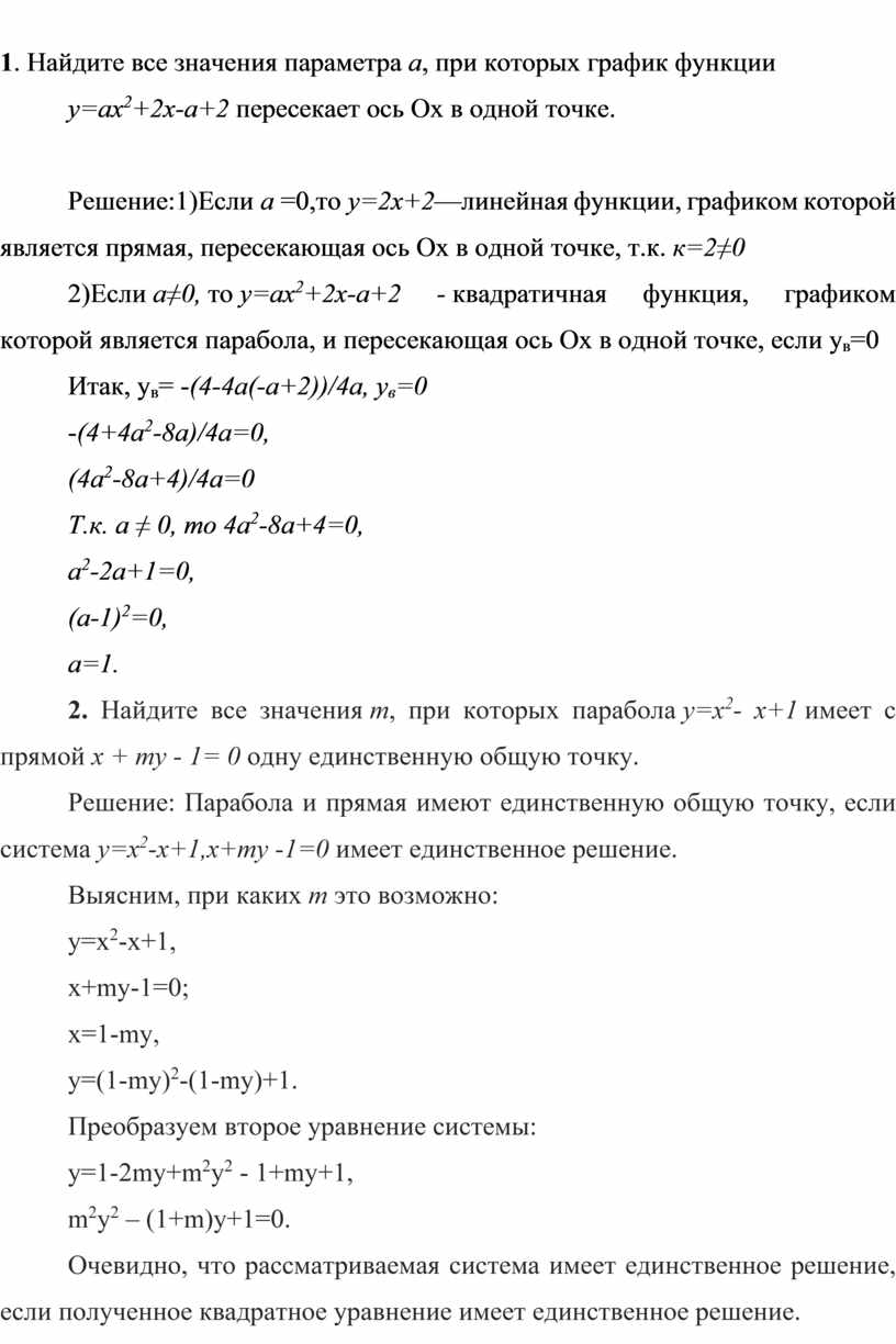 Решение соответствующих уравнений, содержащих параметр.