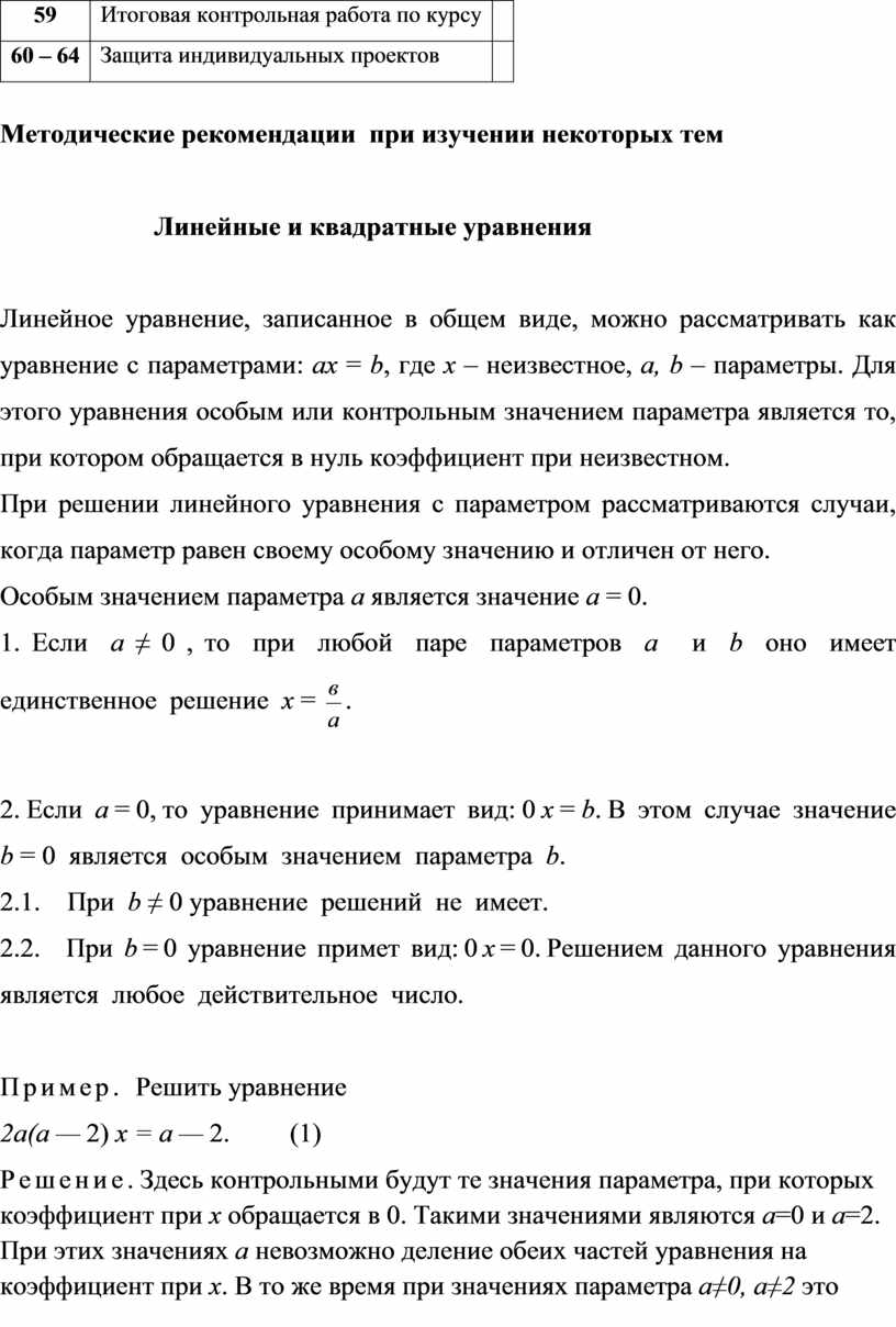 II. Решение линейных уравнений (и уравнений, приводимых к линейным), содержащих параметр.