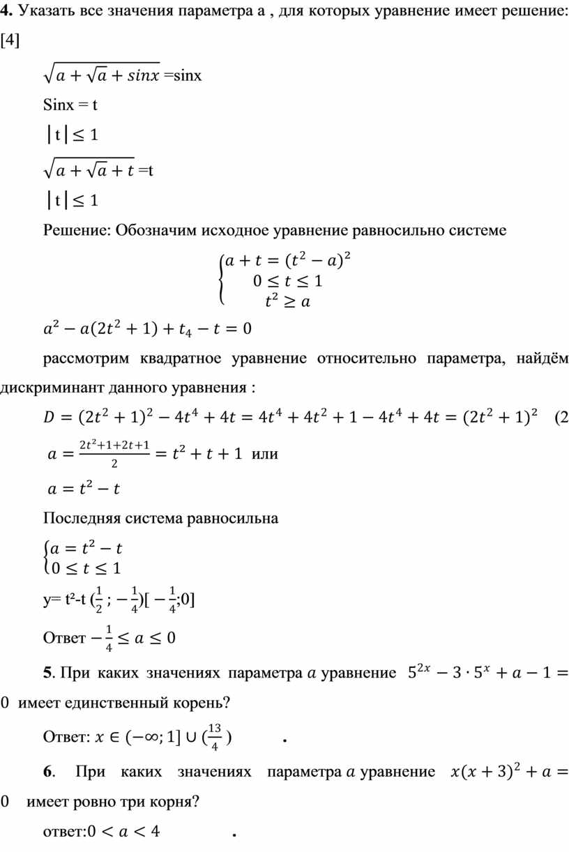 4. Указать все значения параметра а , для которых уравнение имеет решение: [4]
