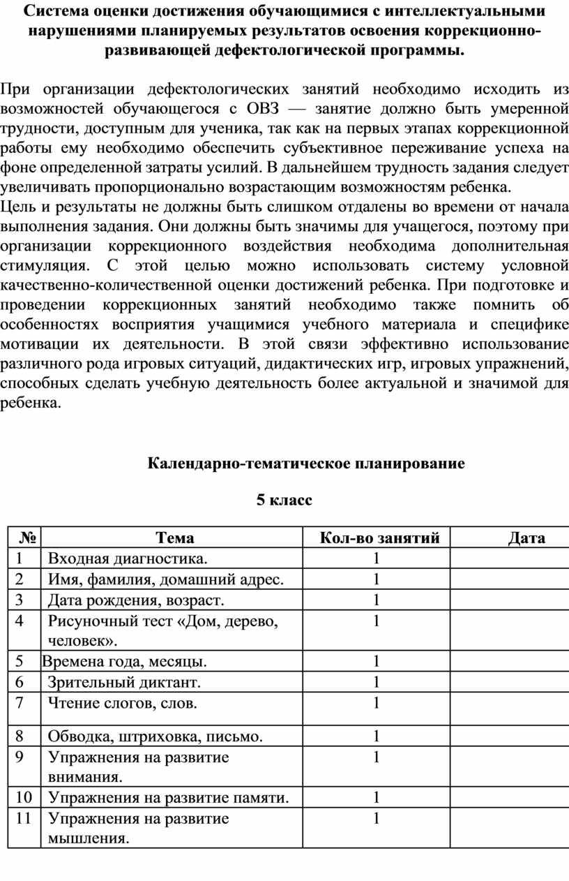 При организации дефектологических занятий необходимо исходить из возможностей обучающегося с ОВЗ — занятие должно быть умеренной трудности, доступным для ученика, так как на первых этапах коррекционной работы ему необходимо обеспечить субъективное переживание успеха на фоне определенной затраты усилий. В дальнейшем трудность задания следует увеличивать пропорционально возрастающим возможностям ребенка.