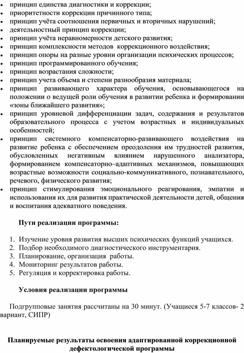 · принцип комплексности методов коррекционного воздействия;