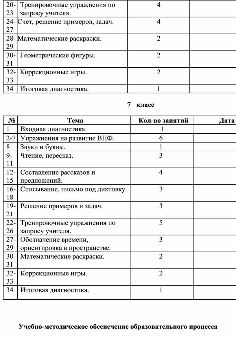 Учебно-методическое обеспечение образовательного процесса