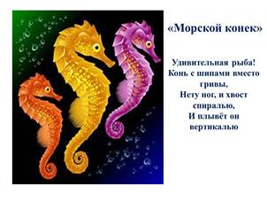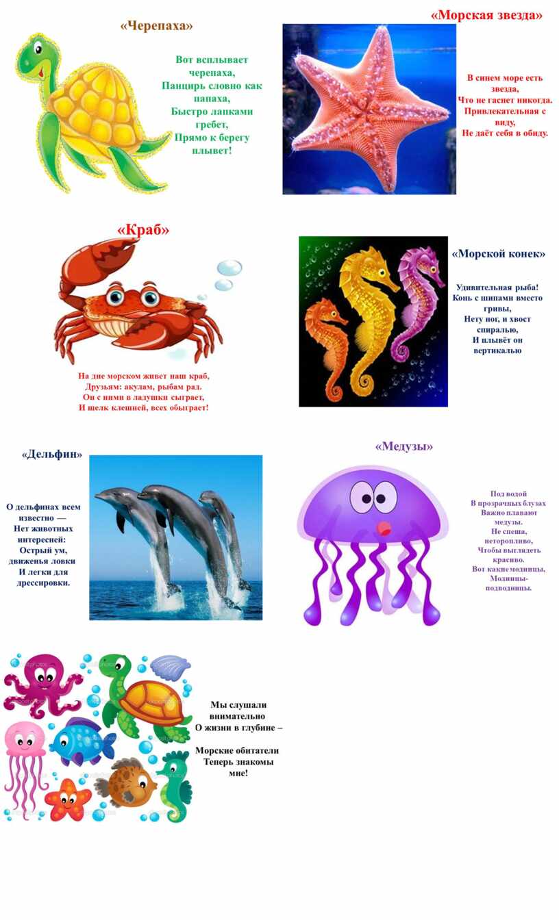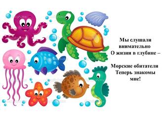 - Там в глубине, в пучине вод живет много удивительных животных – большой скат, морская звезда, большая морская черепаха и благородные дельфины, и хищница акула, и необыкновенный осьминог.