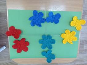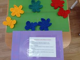 Воспитатель: Ребята давайте свои цветочки разместим на магнитной доске. А бабочка пусть ими любуется.
