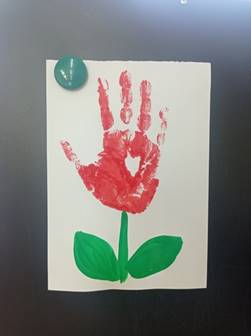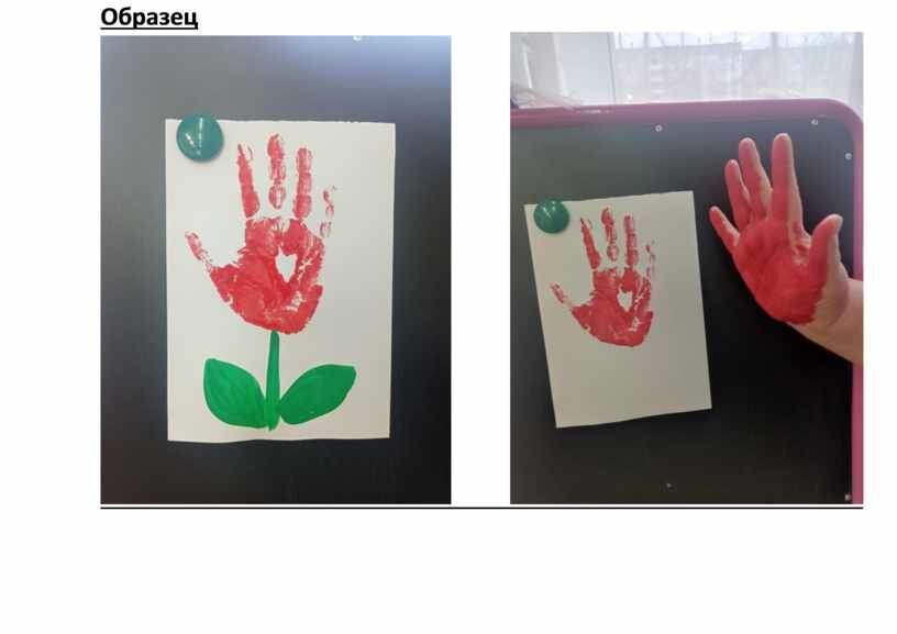 Теперь мы аккуратно, по одному обмакиваем ладошку в краску, и прикладываем ее к листочку! Работаем аккуратно. Набирайте на ладошку краску хорошо, чтобы цветочек был яркий.