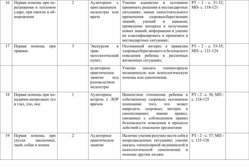 Экскурсия в травматологический пункт; |