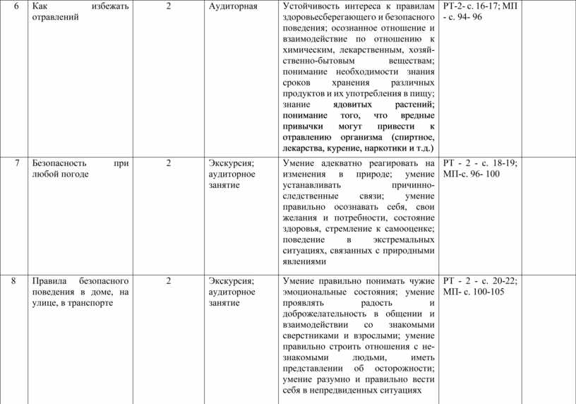 Устойчивость интереса к правилам здоровьесберегающего и безопасного поведения; осознанное отношение и взаимодействие по отношению к химическим, лекарственным, хозяйственно-бытовым веществам; понимание необходимости знания сроков хранения различных продуктов и их употребления в пищу; знание ядовитых растений; понимание того, что вредные привычки могут привести к отравлению организма (спиртное, лекарства, курение, наркотики и т.д.) |