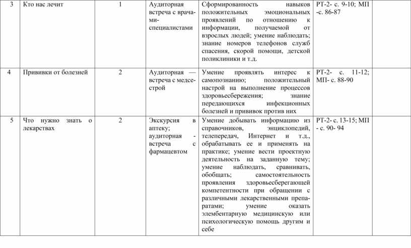 Знание различных медицинских профессий; умение соблюдать правила безопасности; умение фиксировать результаты наблюдений и делать соответствующие выводы; умение выдвигать разные варианты решения проблемы; умение добывать информацию и применять ее в различных жизненных ситуациях, связанных со здоровьесбережением |