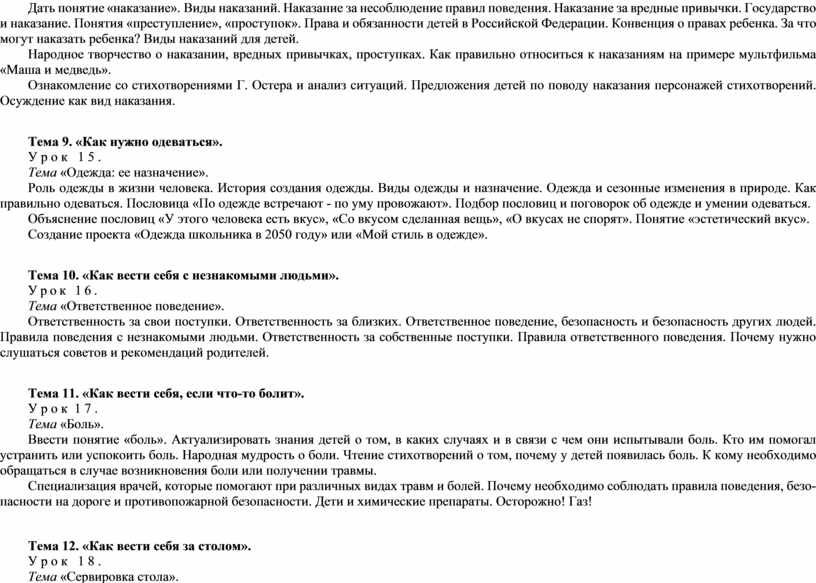 Тема 11. «Как вести себя, если что-то болит».
