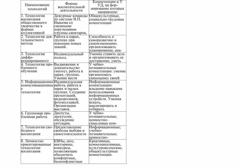 1. Технология воспитания общественного творчества в формах коллективной творческой деятельности И.П. Иванова. |