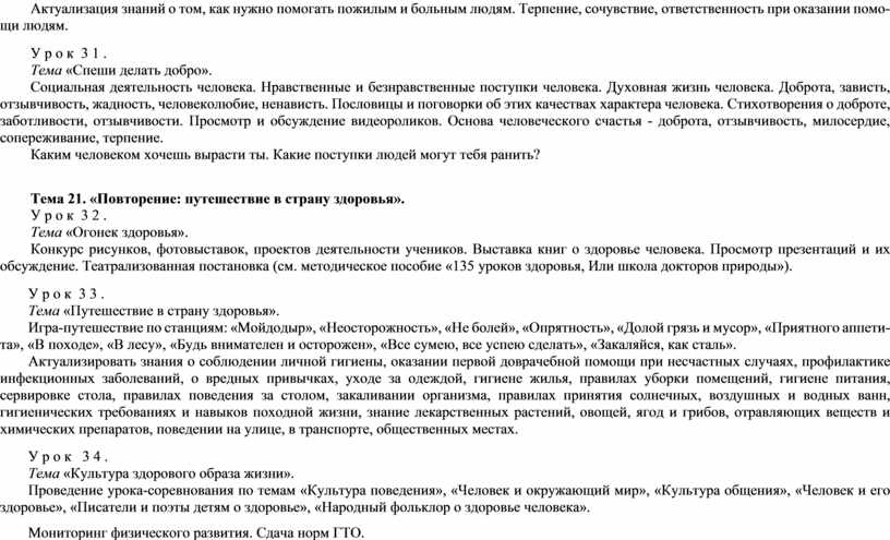 Проведение урока-соревнования по темам «Культура поведения», «Человек и окружающий мир», «Культура общения», «Человек и его здоровье», «Писатели и поэты детям о здоровье», «Народный фольклор о здоровье человека».