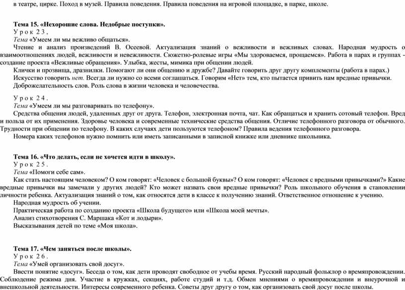 Тема 15. «Нехорошие слова. Недобрые поступки».
