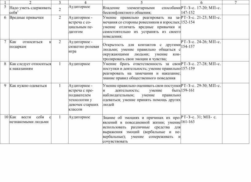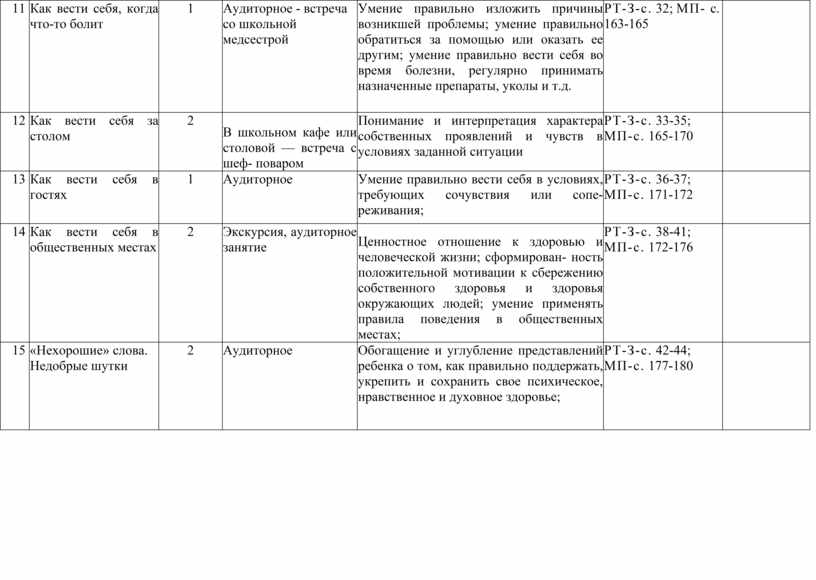 Учитывая, что программа предусматривает освоение основных, культурных и этикетных норм, учителю вместе со школьниками необходимо выработать определенные правила поведения на весь период проведения занятий.