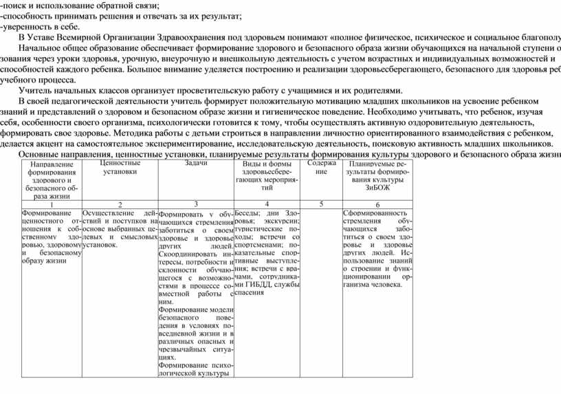 Ценностно-смысловые компетенции по здоровьесберегающему направлению предполагают наличие сформированных у младших школьников универсальных учебных действий: