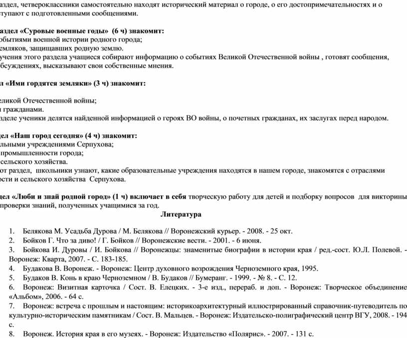 Узнавать историю возникновения и развития городов Воронежа и Павловска. |