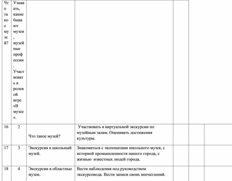Узнавать, какие бывают музеи, музейные профессии. Участвовать в ролевой игре «В музее». |