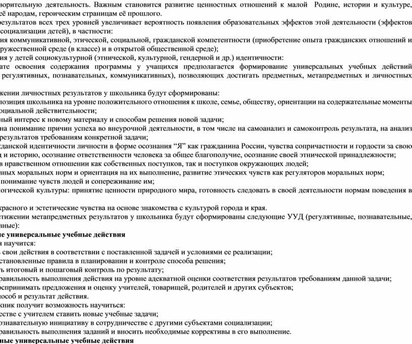 В результате освоения содержания программы у учащихся предполагается формирование универсальных учебных действий (личностных, регулятивных, познавательных, коммуникативных), позволяющих достигать предметных, метапредметных и личностных результатов.