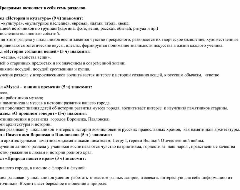 Программа представляет собой интегрированный курс, имеющий целью ввести учащихся в мир истории и культуры наших предков.