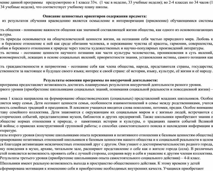 Одним из результатов обучения краеведению является осмысление и интериоризация (присвоение) обучающимися системы ценностей.