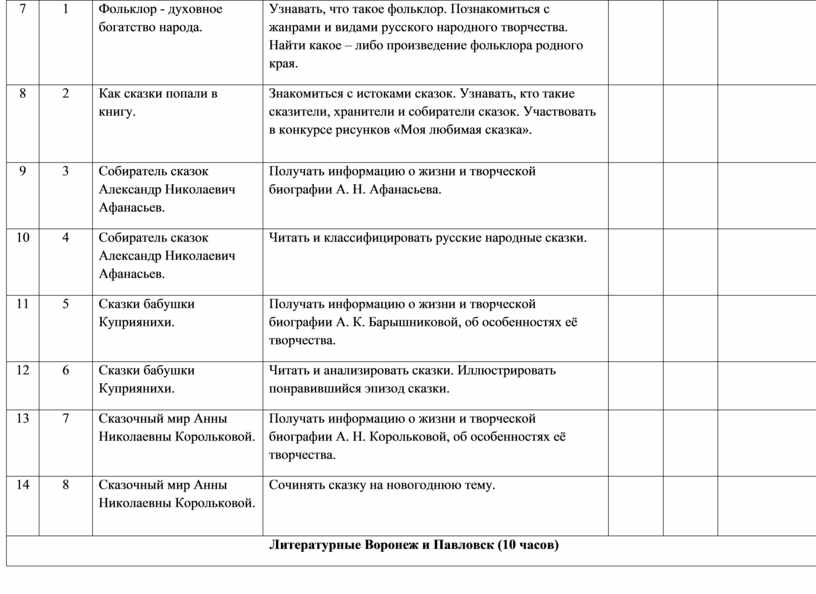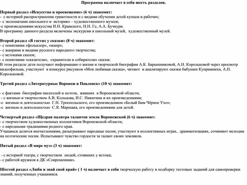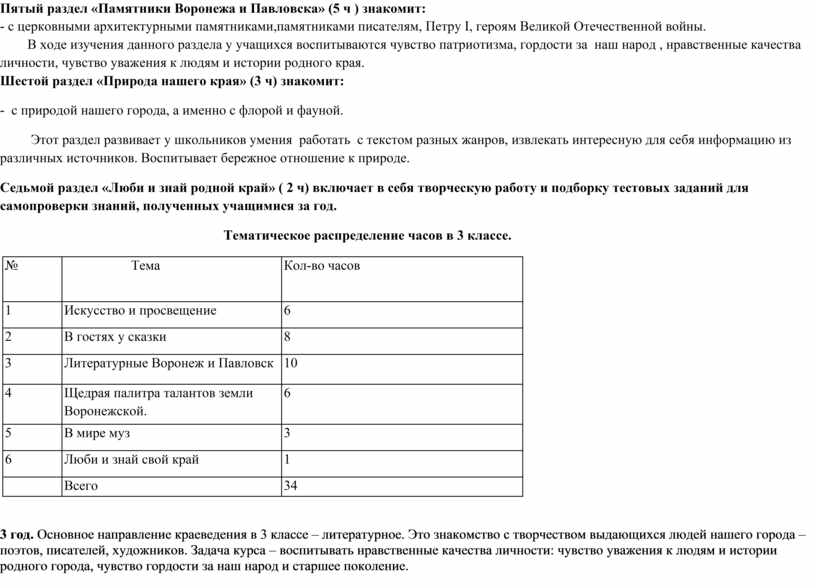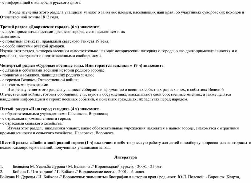 Литературные Воронеж и Павловск (10 часов) |