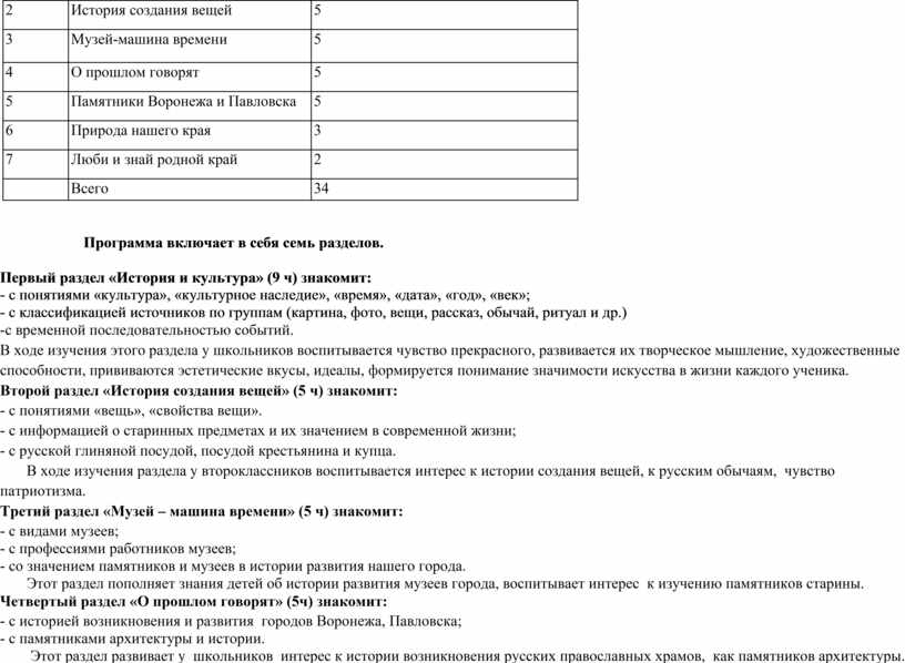 Программа представляет собой интегрированный курс, имеющий целью ввести учащихся в мир истории и культуры наших предков.