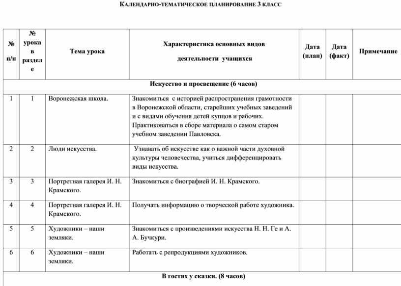 Календарно-тематическое планирование 3 класс