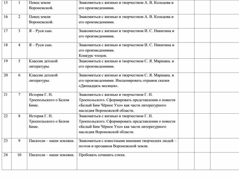 Знакомиться с жизнью и творчеством А. В. Кольцова и его произведениями. |