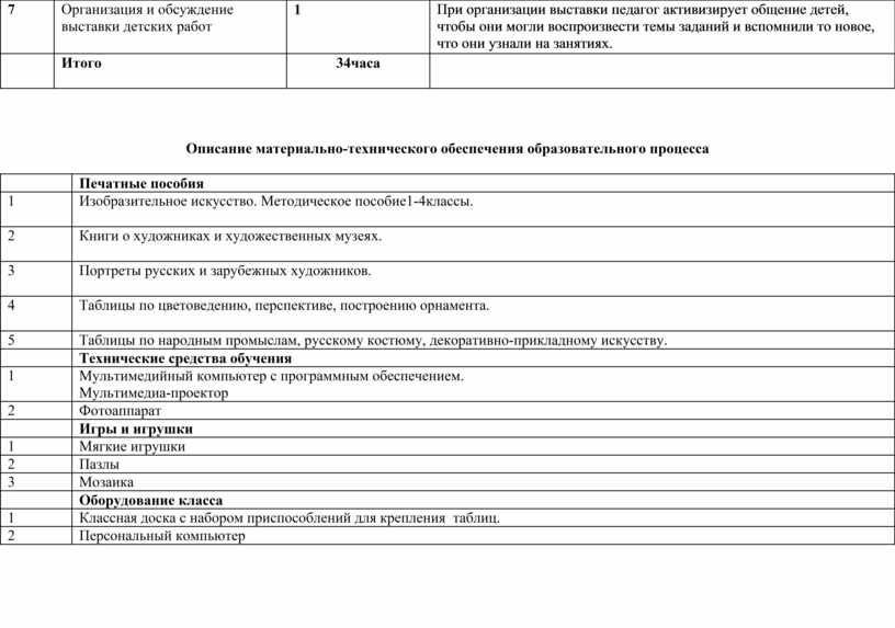 Продолжительность занятий строится в начальной школе из расчёта 34 часа (по одному часу в неделю).
