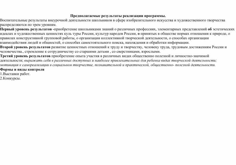 Воспитательные результаты внеурочной деятельности школьников в сфере изобразительного искусства и художественного творчества распределяются по трем уровням.