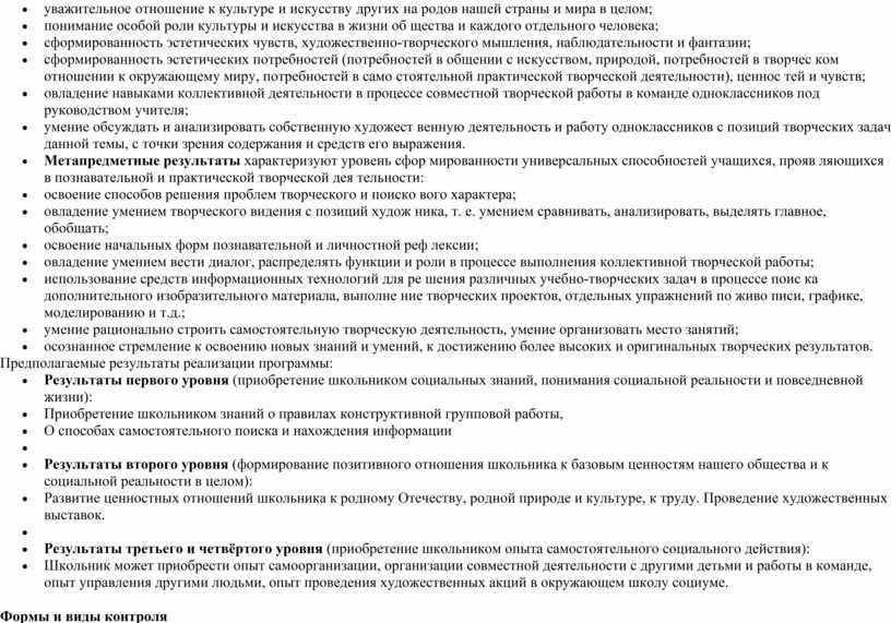 В результате изучения курса «Мир глазами художника» в начальной школе должны быть достигнуты определенные ре зультаты.