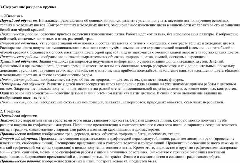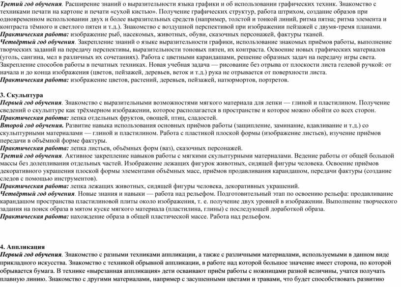 Третий год обучения. Третий год творческого развития детей позволяет им в процессе обсуждения достигнутых результатов высказывать свою точку зрения о положительных качествах работ сверстников. Кроме этого, школьники могут высказать и критические замечания о работах, связывая их с реализацией творческой задачи, поставленной на занятии. Таким образом, происходит закрепление новых знаний, полученных за год.