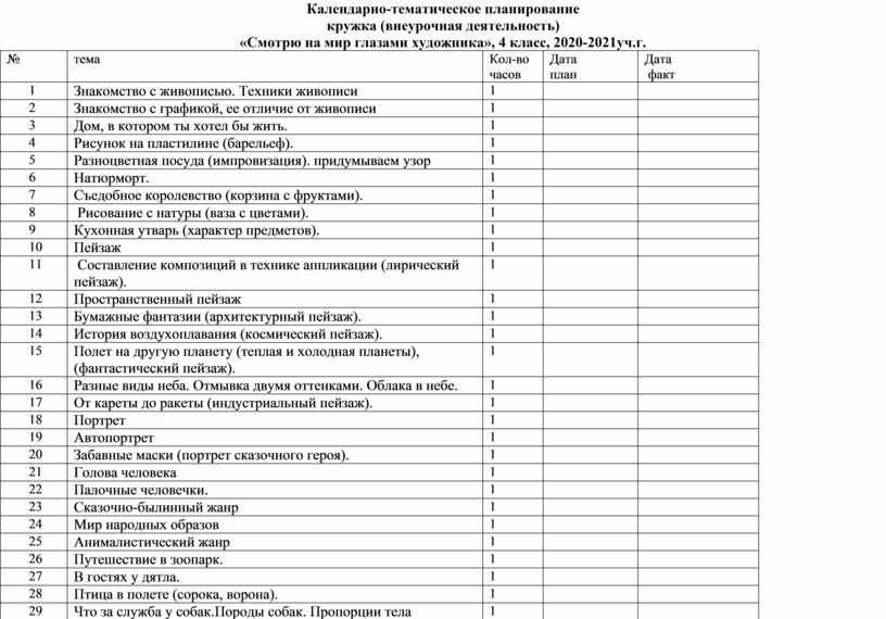 4. Тематическое планирование. 4 кл. (Четвёртый год обучения)