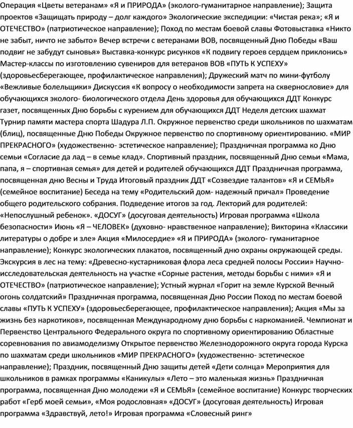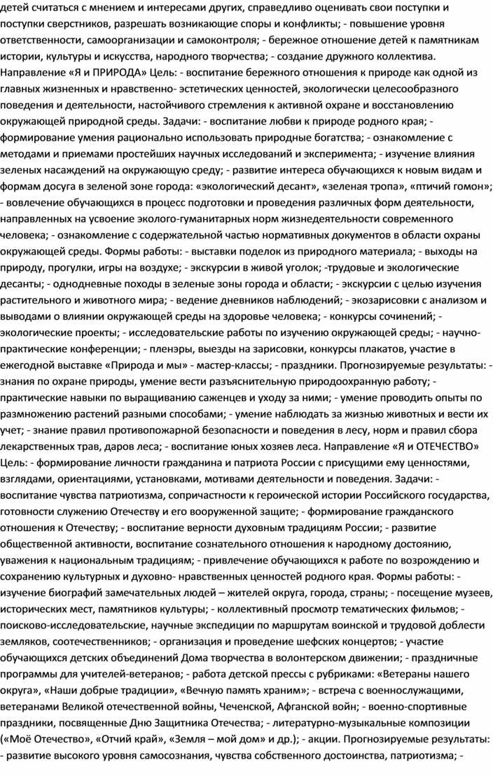 • «Я и ПРИРОДА» (эколого-гуманитарное направление);